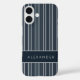 Ce boîtier de téléphone cellulaire présente un design élégant et élégant avec des rayures verticales d'or sur un arrière - plan noir, lui donnant un aspect raffiné et luxueux. Une bande noire horizontale de l'autre côté du centre montre le nom des propriétaires en lettres majuscules or gras, ajoutant une touche personnalisée et premium. L'esthétique générale est moderne, sophistiquée et design, idéal pour quelqu'un qui apprécie à la fois la mode et la fonction.