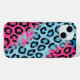 Coques Case-Mate iPhone Empreinte de léopard dynamique en rose et bleu