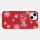 Ce coque iphone mignon est accentué par Bride, écrit en blanc fantaisie sur un arrière - plan rouge et beaucoup de flocons de neige en font le cadeau parfait pour la nouvelle mariée pendant les vacances.