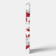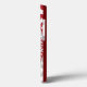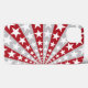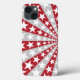 Un étui téléphonique avec un motif de rayures rouges et grises rayonnant du centre, recouvert d'étoiles blanches.