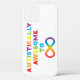 Design fait avec amour pour la Sensibilisation sur l'autisme. Les lettres arc-en-ciel forment l'expression "Autistiquement Awesome To Infinity" avec un symbole infinity.