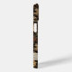 Customize this fall leaves camouflage iPhone 15 case with your name in a trendy modern CAP font in brown on opaque cream. It's masculine and perfect for your favorite military, hunting, country or outdoorsman!