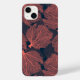 Motif vectoriel en coraux de ventilateur en couleur corail vivant sur arrière - plan bleu foncé.