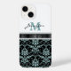 Coques Case-Mate iPhone Faux Parties scintillant Aqua Damask Monogramme