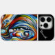 Un tableau abstrait du visage d'une femme, rendu dans des couleurs vives et des formes tourbillonnantes. Ses yeux sont fermés, suggérant un état de contemplation ou une pensée profonde