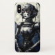 + AI ART + Belle cyborg de style rétro devant la lune.