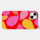 Feuilles d'automne . Feuilles roses, jaunes, orange sur un fond rouge vif texturé.