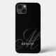 monogramme personnalisé filigrane élégant noir iPhone 13 Coque. Élégant modèle de typographie de script. Créez votre propre couverture smartphone personnalisée au design luxueux. Fancy lettrage tourbillonnant qui peut être agrandi ou rendu plus petit et placé à votre goût. Vous pouvez également modifier toutes les couleurs des lettres et de l'arrière - plan. Belle modèle avec police de style luxe. Également disponible pour Samsung Galaxy S téléphones et autres marques populaires. Accessoires téléphoniques de protection qui peuvent être entièrement customisés avec votre propre imprimé.
