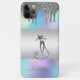 Un design moderne girly et mignon de chat, parties scintillant argent goutte sur l'arrière - plan holographique. Un cadeau unique pour la tendance et amoureux de la mode. N'importe quelle fille adorerait avoir ce design élégant.