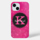 Ce design à la fois tendance et unique en son genre est composé d'un métal magenta fuchsia rose brun et de diamants chic brillants pour une parties scintillant et un éclat supplémentaires. Au centre se trouve un grand monogramme rose vif personnalisable dans la typographie serif populaire avec un nom personnalisable en blanc dans le script populaire de calligraphie à la mode avec un look à la main. Derrière le monogramme et le nom est un cercle noir bordé de diamants roses chauds et amusants. Vous pouvez personnaliser cet article en modifiant le monogramme et le nom dans le modèle de produit.