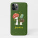 Un beau conte de fées a inspiré l'illustration d'un prince de grenouille assis sur un champignon et regardant les lucioles. Le boîtier de téléphone à thème de grenouille à bois blanc est personnalisable et vous permet d'ajouter votre nom !