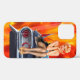 coque iPhone 12 Pro avec une photo que j'ai prise d'une voiture à canne chaude vintage et une illustration vintage des années 1950 d'une jolie petite fille en pin. Cool rétro !