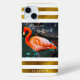 Coques Case-Mate iPhone Flamant rose élégant Photo Gold Stripes Dare Citat