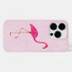 Ce coque iphone de Flamant rose rose présente un Flamant rose rose mignon sur un arrière - plan de coeur rose.