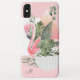 Coques Case-Mate iPhone Flamant rose tropical féminin avec Monogramme