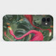 Deux flamants roses sur un arrière - plan de feuilles monstères