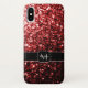 Personnalisez le faux coque iphone brillant avec votre initiale et votre nom. De belles parties scintillant rouges brillantes brillent. Photo Red sparkles pas de parties scintillant réelle!