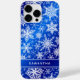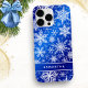 Créez un étui téléphonique de Noël personnalisé avec un motif de flocons de neige bleu et blanc royal. Le modèle facilite la saisie de votre nom.