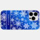 Coques Case-Mate iPhone Flammes de neige bleu blanc de Noël monogramme