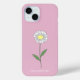 Un étui de téléphone rose avec une illustration de fleur marguerite botanique aux couleurs pastel (Leucanthemum vulgare) et un texte personnalisable en bas : idée cadeau parfaite pour une fille qui aime les fleurs. La marguerite est la fleur de naissance d'avril et elle symbolise la gentillesse, la pureté, l'innocence, la joie et la joie.