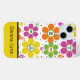 Communiquez avec style grâce à cette coque d'iPhone personnalisable qui présente un design tendance de flower power de style rétro dans des nuances vibrantes de rose, orange, jaune et vert. Ce qui rend ce design unique, ce sont les six espaces de texte qui vous permettent d'ajouter un nom et de personnaliser le texte à l'intérieur de chaque fleur pour créer un cadeau vraiment unique pour les femmes, les adolescentes et les filles qui aiment le design rétro moderne. Parfait pour les anniversaires, les vacances ou toute autre occasion. Cette coque de téléphone amusante est sûre de ravir les femmes de tous âges.