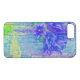Ce boîtier téléphone affiche un collage numérique composé de plusieurs couches de scans de photographies, de peintures et de textures. Un amas de fleurs violettes bleues est posé sur un arrière - plan abstrait dans les tons lavande, vert, pourpre et bleu.