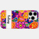 Faites une déclaration rétro avec cette coque de téléphone iPhone 16 Pro Max inspirée des années 70 et du mouvement hippie flower power ! Elle est moderne et tendance avec des fleurs peintes multicolores vives. Rendez-la unique avec votre nom dans une police de caractères script moderne en noir. Elle aura fière allure sur votre téléphone !