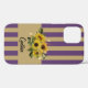 Tapez votre nom ou vos initiales, ou le nom de votre destinataire, dans la section Personnalisée. Ces beaux tournesols de fin d'été, découverts avec d'autres fleurs et feuilles, sont de beaux souvenirs de la fin de l'été. Elles sont élégantes contre un arrière - plan à rayures dorées, aux rayures dorées et violettes profondes, qui ressemble un peu à du papier peint dans une tanière ou une bibliothèque soignée. La combinaison des rayures et des fleurs donne à ce boîtier de téléphone portable un look d'été unique, quelle que soit la saison.