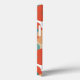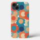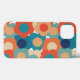 Ce boîtier téléphonique a un design des années 1970 de fleurs dans les tons orange, bleu et crème.