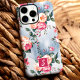 Cette coque de téléphone élégante présente un magnifique design à l'aquarelle de roses roses et pêche avec une verdure luxuriante, sur un fond bleu atténué. L'arrangement floral romantique offre une beauté et un charme intemporels, parfaits pour les amateurs de designs sophistiqués et féminins. Avec un monogramme rose gras, cette coque ajoute une touche personnalisée, ce qui en fait un accessoire idéal pour une utilisation quotidienne ou comme un cadeau attentionné.