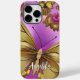 Coques Case-Mate iPhone Fleurs roses Papillons d'or Nom personnalisé