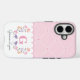 Communiquez avec style avec ce joli coque iphone personnalisable. Doté d'un design floral délicat associé à de charmants bleuets, un motif diamant intemporel, et une bordure en pente branchée, ce coque est l'accessoire idéal pour les femmes pour iPhone. Une palette de couleurs douces, rose, pêche et gris, complète ce design ultra féminin. Personnalisez ce boîtier téléphonique en ajoutant une initiale et un nom pour le rendre unique. Idéal pour les femmes de tous âges, c’est le cadeau idéal pour les anniversaires, les vacances, ou simplement pour vous offrir.