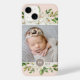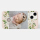 Sacs de téléphone imprimés personnalisés et abordables personnalisés avec vos photos et texte. Ce joli design féminin a une bordure florale peinte dans les tons blanc, vert et or sur arrière - plan rose vif. Ajoutez votre propre photo personnalisée et personnalisez-la avec votre texte initial monogramme ou autre texte personnalisé dans un cadre circulaire. Utilisez les outils de conception pour choisir n'importe quelle couleur arrière - plan, modifier les polices de texte et les couleurs et ajouter plus de photos pour créer un coque photo monogrammé de type pour votre appareil.