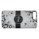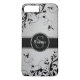 Amusant, mais professionnel, cet Acier brossé d'argent personnalisé (effet photo imprimé) et tourbillons floral noir est une excellente façon d'accessoiriser. Faites une déclaration de mode avec votre initiale monogramme et nom sur une étiquette circulaire avec une ligne noire sur un motif à tourbillons floraux et un arrière - plan argenté solide.