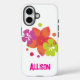 Take the tropics with you with this hot pink and chartreuse tropical flower phone case. The design of this case includes hibiscus and plumeria flowers commonly found in tropical environments. This is also a template allowing you to personalize your phone with your name or other message. The font is a distressed block letter with a beachy feel. This makes a great gift for the iPhone (16) lover in your life.