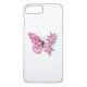Flower arrangement of pink butterfly with rose Japanese cherry blossoms on white background.
