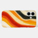Ce coque présente des rubans brillants d'orange et de noir courbant comme des flux de lave. Un look abstrait dynamique et enflammé.