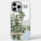Coques Case-Mate iPhone Forêt de pins verts et lac monogrammés
