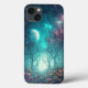 Belle forêt mystique à mi-lune et lumières paranormales.