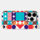 Abstrait iphone géométrique 14 pro costume mate en bleu, turquoise, rouge, noir et orange.