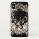 Un beau mâle majestueux avec un ensemble impressionnant d'andouillers entourés par une guirlande de feuille et de glands. Grande caisse de portable pour le chasseur avide de cerfs communs.