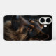 Moody, photographie cinématographique montrant un gros plan extrême de fourrure de berger allemande somptueuse, remplissant le cadre avec son manteau de sable sombre et luxueux, chaque brin exquis texturé et détaillé, rayonnant une atmosphère de mystère et d'intimité. Le regard du spectateur est inéluctablement attiré dans les profondeurs de la noirceur veloutée, évoquant des sentiments de chaleur, d'émerveillement et de subtilité. L'ambiance générale est sombre mais captivante, avec des chuchotements de brun terreux et des notes de sous-tons rouges riches qui ajoutent complexité et nuance à la palette majoritairement monochromatique, enrichie par le jeu de lumière douce et diffuse sur les crêtes et les vallées texturées de la fourrure.