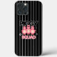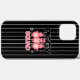 Couvercle de téléphone avec drôle rose trois pignon sur noir rayé arrière - plan