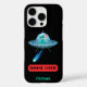 Design propose une typographie "Game Over" et un Alien amusant et cool volant un vaisseau spatial OVNI tirant sur quelque chose dans un style Pixel Art. Le nom est dans un texte vert vif. Ce Coque iPhone 13 serait idéal pour tout adulte ou enfant qui aime la Sci-Fi. Personnalisable avec votre nom ou vos initiales. Copyright Soar In Style Designs LLC.