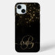 Créez votre propre étui de téléphone étincelant en diamant noir et or personnalisé avec votre monogramme et votre nom personnalisés.