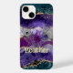 Design moderne, glam Agate Blue et violet avec étui téléphonique Peacock plumes. Customisez à un nom, un monogramme ou un texte court qui dit/cite. Remarque supplémentaire : Cette conception peut être personnalisée dans la zone fournie en modifiant la photo et/ou le texte. Il peut être customisé en cliquant sur "Personnaliser ce Modèle", puis en choisissant l'option "cliquer pour customiser" et en supprimant ou en modifiant la couleur de l'arrière - plan, en ajoutant du texte, en modifiant la couleur ou le style du texte, ou en supprimant le texte pour une conception d'image uniquement.