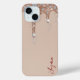 Élevez votre téléphone avec cette coque iPhone minimaliste et glamour haut de gamme, avec un fond mat beige doux et un accent de goutte à goutte en fine paillette rose or contrôlée qui coule de manière organique du bord supérieur vers le bas.