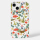 Motif à thème Whimsical vert et rouge boisé conçu par Shelby Allison avec de minuscules personnages de gnome, champignons, fleurs et feuillage.