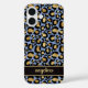 Coques Case-Mate iPhone Gold Foil On Blue Leopard Print Monogrammed