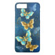 Composition de flying, jewelry, or et dark butterflies on textured jewelry background. Golden butterfly.